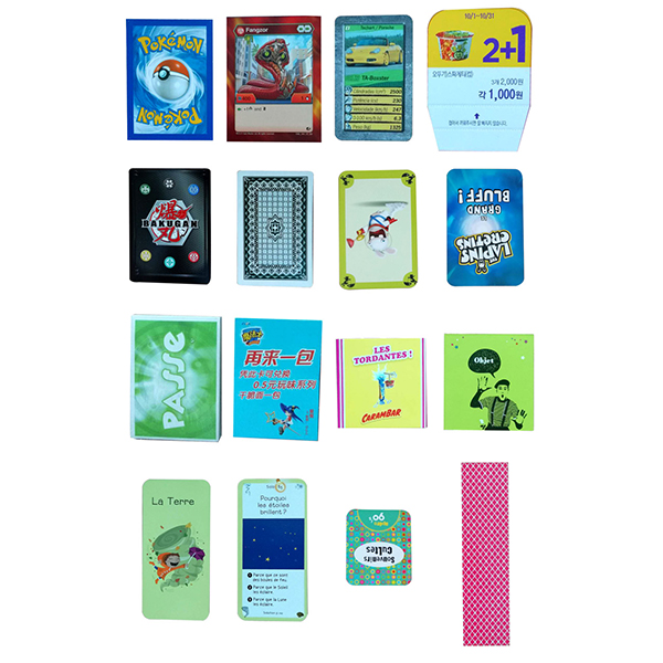 صمم نظام إنتاج الكروت الأوتوماتيكي بشكل عام للتقطيع المباشر، التقطيع بالقوالب وتجميع الكروت المتنوعة، استخدمت على نطاق واسع في تصنيع ورق اللعب، كروت الاستذكار "فلاش كارد"، كروت الورق المقوى، ورق اللعب، الخ. الخصائص المهمة لخط إنتاج ورق اللعب هذا تتمثل في أن كل الكروت المستقلة تفرز وتنظم وفقاً لنمط تنظيمي مناسب.